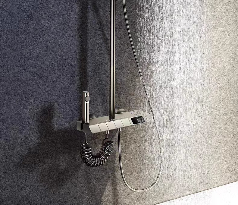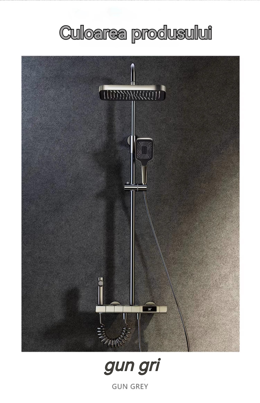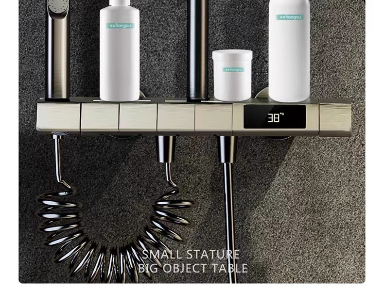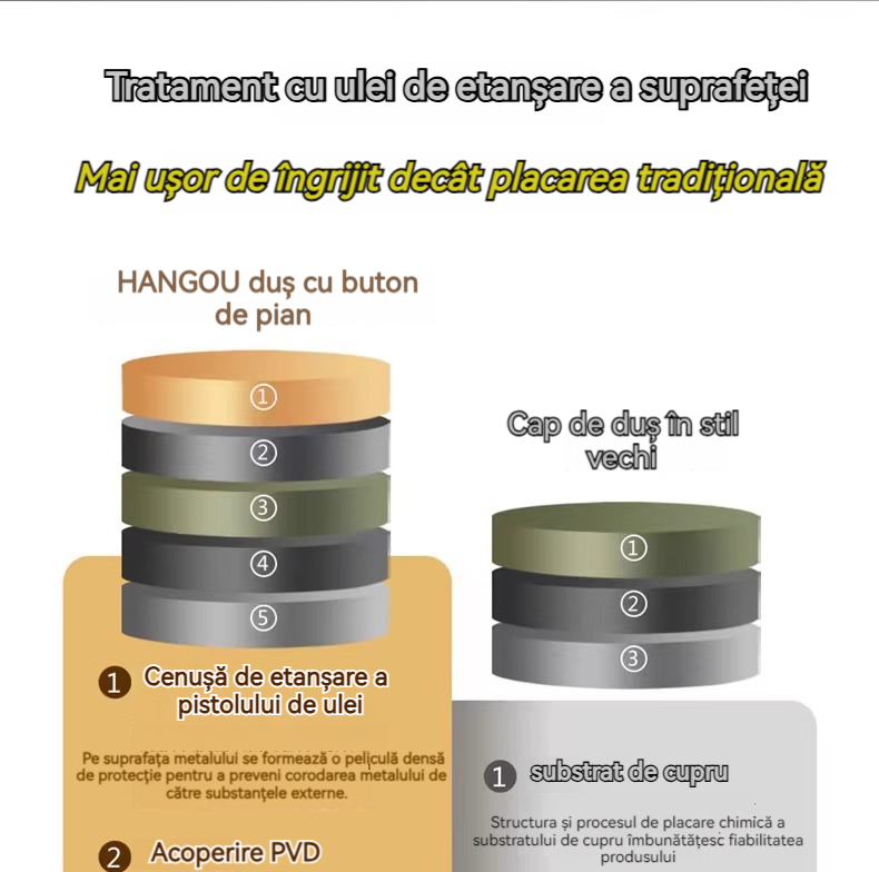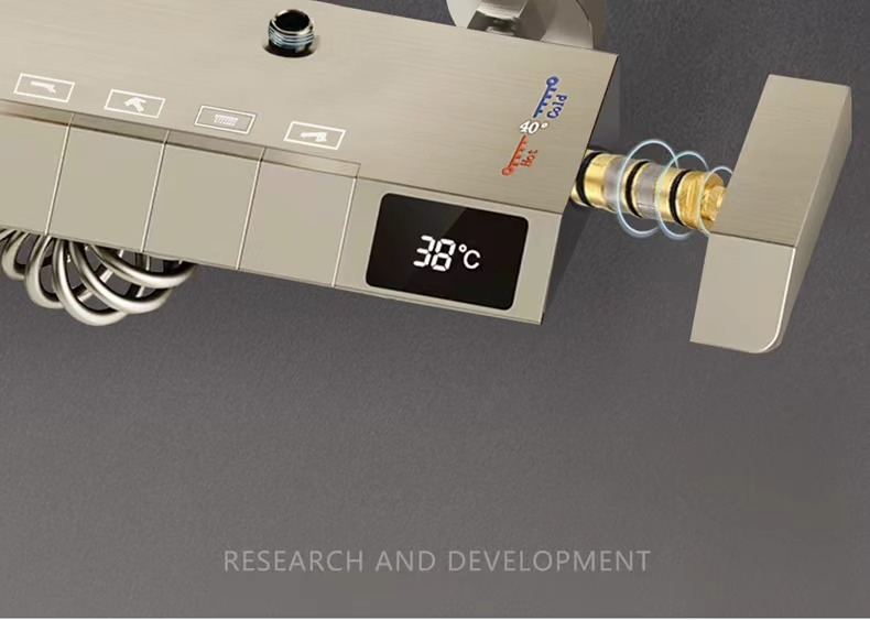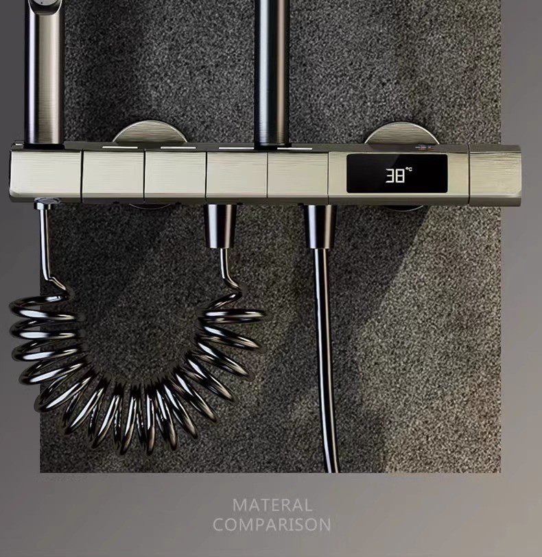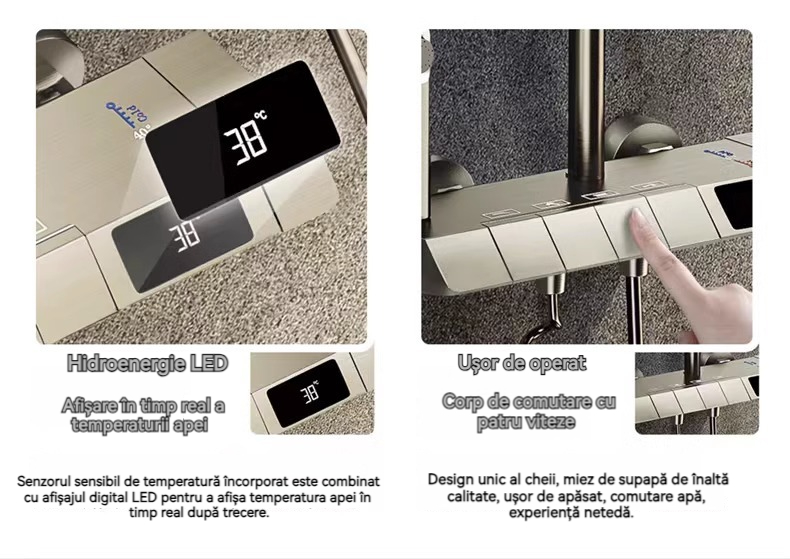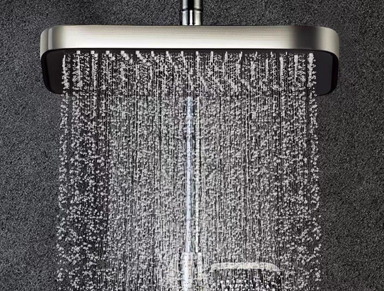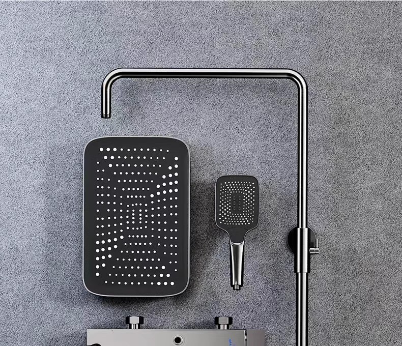 Minimalism combinat cu înaltă tehnologie, design al tastelor de pian. Cap de dus cu amplificator de aer, debit mare si fin de apa, corp de dus din cupru fin, control precis al temperaturii, potrivit pentru orice varsta. Garanție pe viață, ușor de instalat